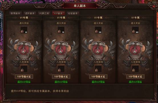 VIP副本:提升VIP等级,即可挑战专属副本,获得丰厚奖励。