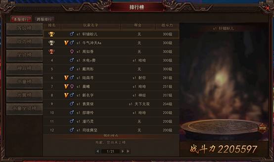 排行榜大家都很熟悉了,这是一个展示实力(土豪?)的地方。但也不要忘了排行榜能提供的诸多信息,霸榜的您说不定也在被对手盯着分析